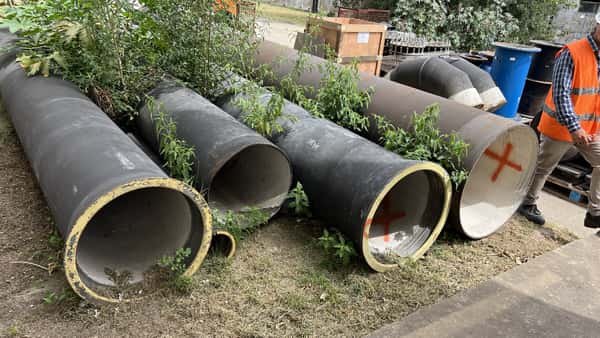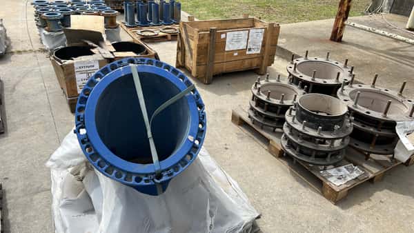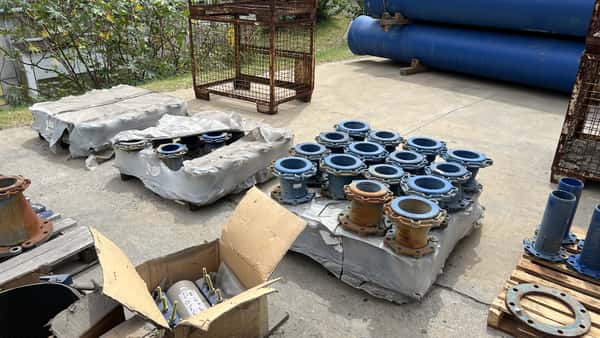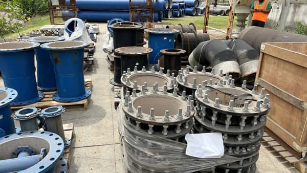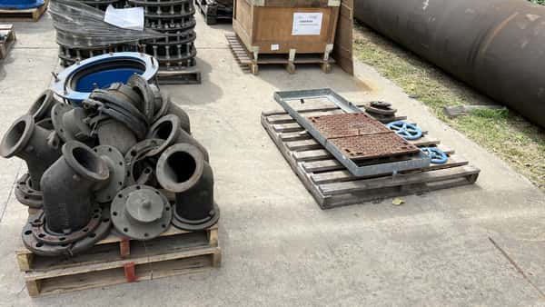 | Observaciones: | 30 PALLETS DE REPUESTOS VARIOS (CODOS DE 90º Y 45º; TAPAS DE INSPECCIÓN; BRIDAS; MANCHONES DE REPARACIÓN; VOLANTES DE ESCLUSAS MEDIDAS 200, 255 Y 315; 2 EQUIPOS DE AIRE SIN PROBAR ETC. ) + 4 CAÑOS 1 DE 7MTS Y 3 DE 5MTS APROX. REVESTIDOS CON MORTERO A BASE DE CEMENTO DE ALTO HORNO PINTADO EXTERIOR BITUMINOSO. |