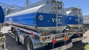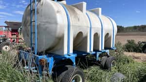 TRAILER CAMA DE TANQUE DE AGUA MARCA AIELLO - COLOR AZUL, CONSTRUCCION DE VIGA DOBLE, 1 EJE, RODADO 215/80 R16 + 3 TANQUES DE AGUA MARCA ROTOPLAS DE 25.000LTS DE CAPACIDAD
